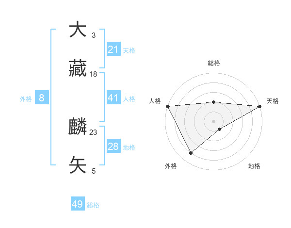 大藏 麟矢さんの天格は21画の5点!