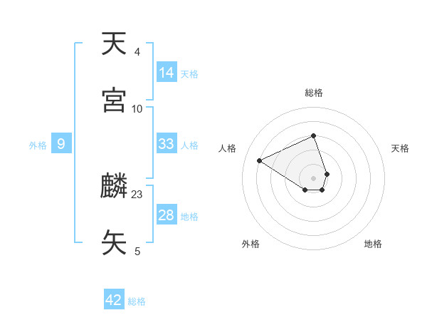 天宮 麟矢さんの総格は42画の3点!