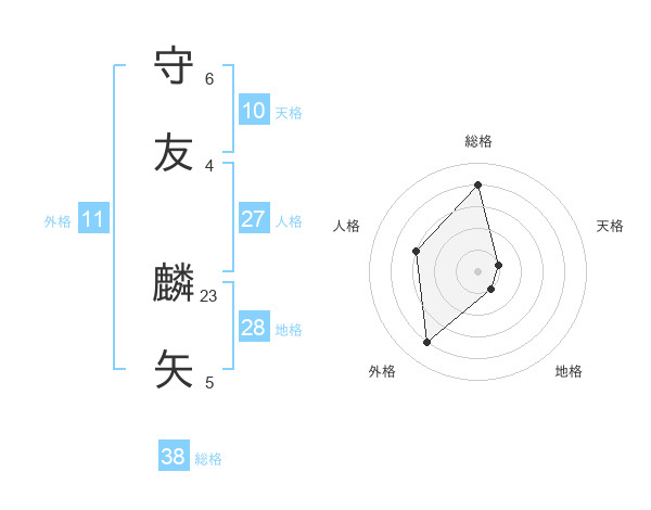 守友 麟矢さんの総格は38画の4点!