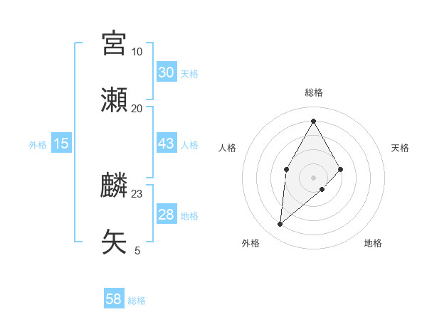 宮瀬 麟矢さんの総格は58画の4点!