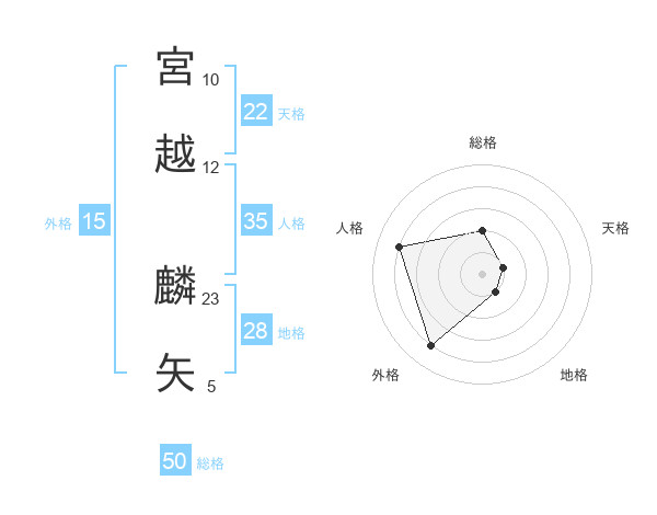 宮越 麟矢さんの総格は50画の2点!