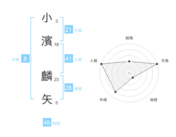 小濱 麟矢さんの天格は21画の5点!