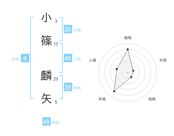 小篠 麟矢さんの天格は20画の1点!