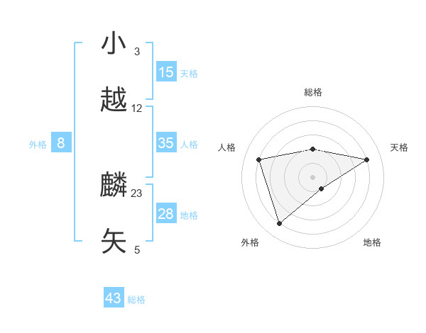 小越 麟矢さんを姓名の画数から五運を鑑定