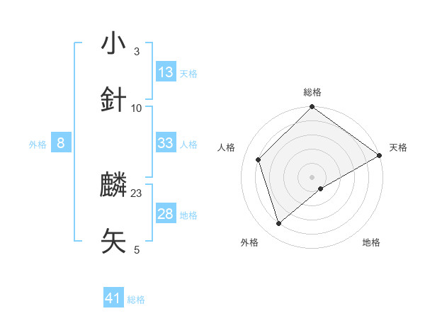 小針 麟矢さんの総格は41画の5点!