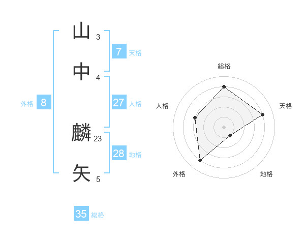 山中 麟矢さんを姓名の画数から五運を鑑定