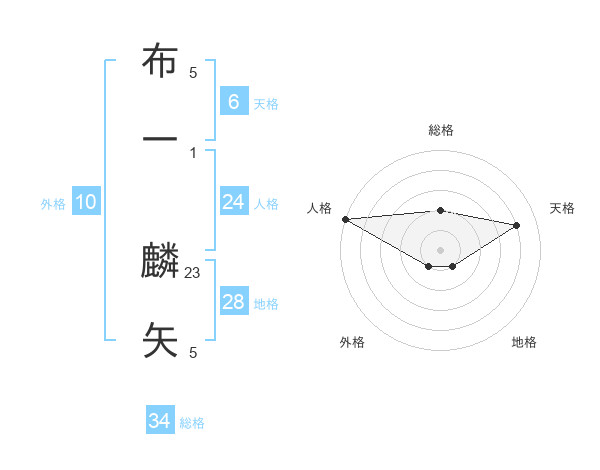 布一 麟矢さんを姓名の画数から五運を鑑定