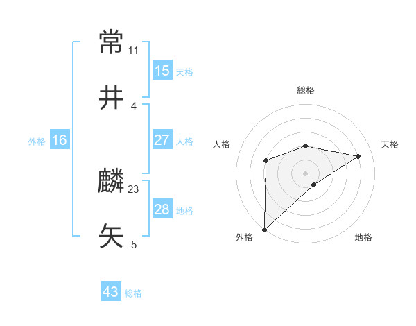 常井 麟矢さんを姓名の画数から五運を鑑定