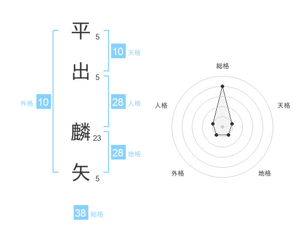 平出 麟矢さんの総格は38画の4点!