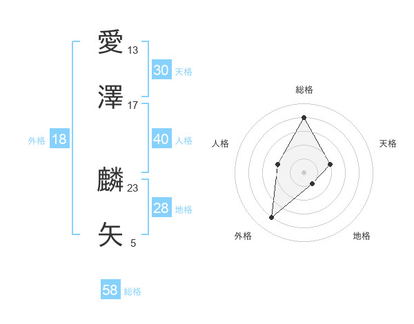 愛澤 麟矢さんの総格は58画の4点!