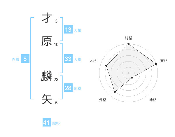 才原 麟矢さんの天格は13画の5点!