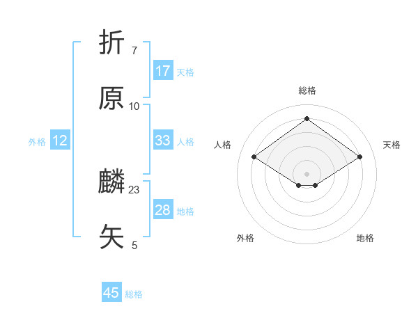 折原 麟矢さんの総格は45画の4点!