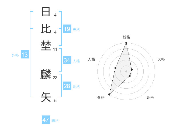 日比埜 麟矢さんの総格は47画の5点!