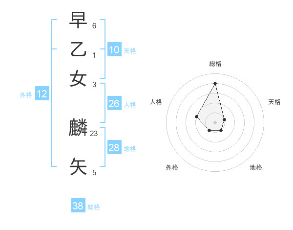 早乙女 麟矢さんの総格は38画の4点!