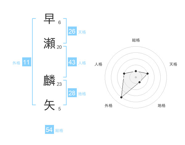 早瀬 麟矢さんの天格は26画の2点!