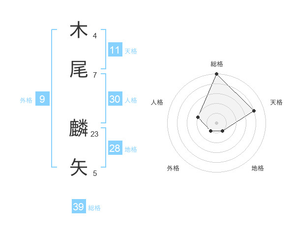 木尾 麟矢さんの総格は39画の5点!