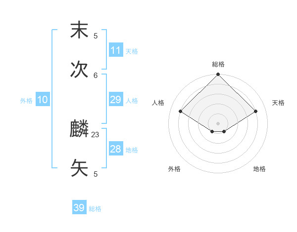 末次 麟矢さんの天格は11画の4点!