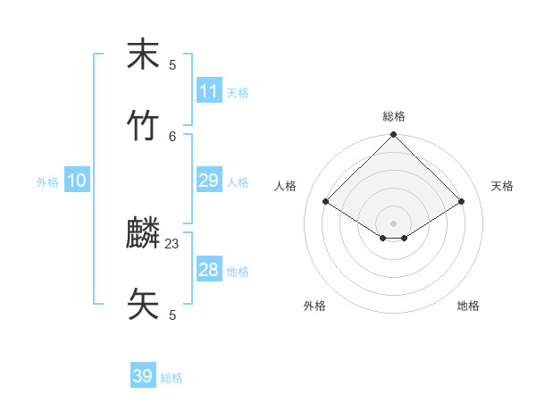 末竹 麟矢さんの総格は39画の5点!