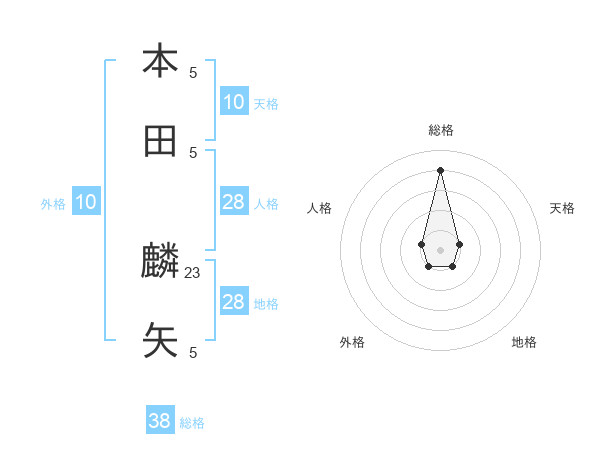 本田 麟矢さんの総格は38画の4点!