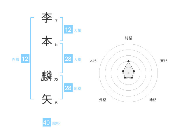 李本 麟矢さんを姓名の画数から五運を鑑定