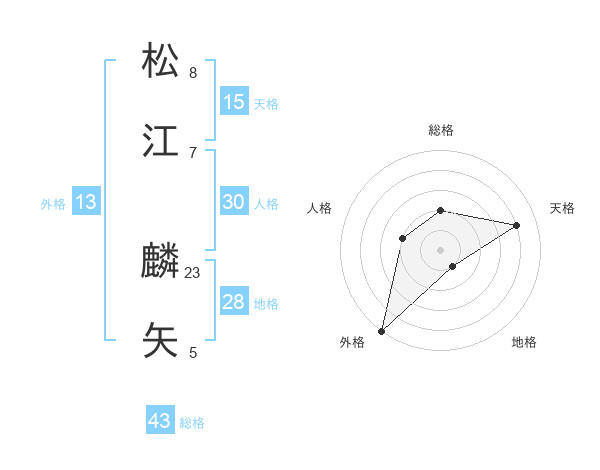 松江 麟矢さんの天格は15画の4点!