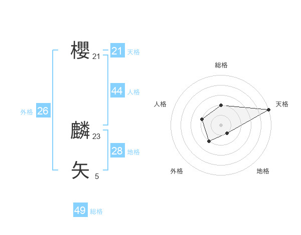 櫻 麟矢さんの天格は21画の5点!