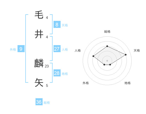 毛井 麟矢さんを姓名の画数から五運を鑑定