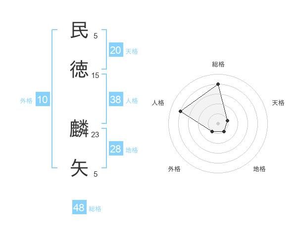 民徳 麟矢さんの総格は48画の4点!