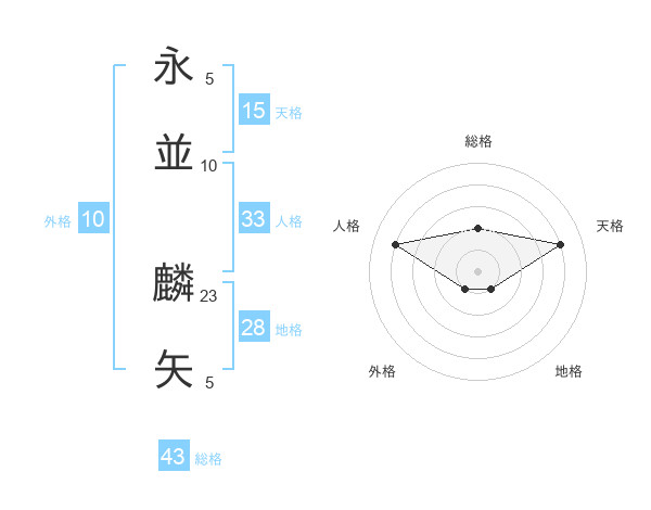 永並 麟矢さんの天格は15画の4点!