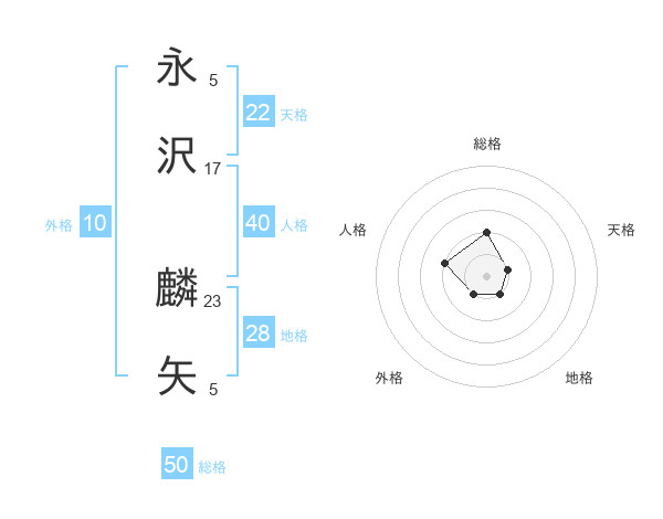 永沢 麟矢さんの総格は50画の2点!