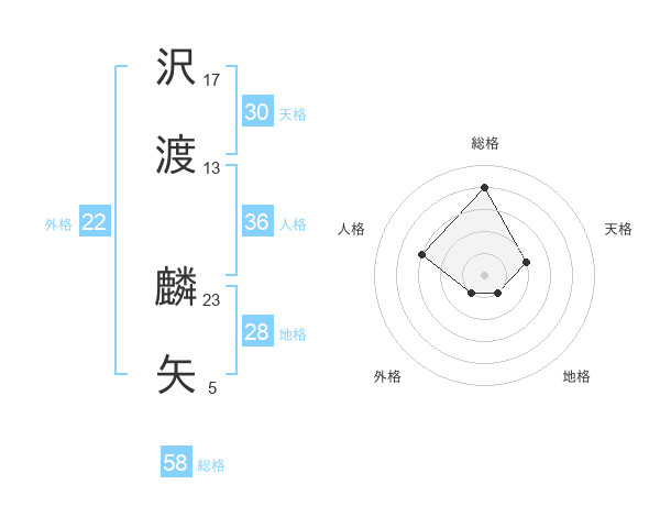 沢渡 麟矢さんの総格は58画の4点!