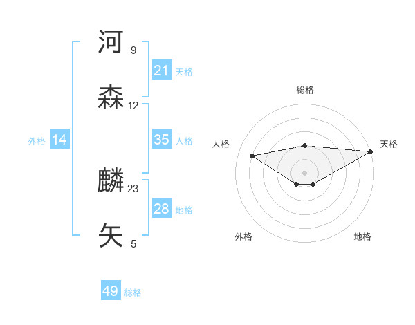 河森 麟矢さんの総格は49画の2点!