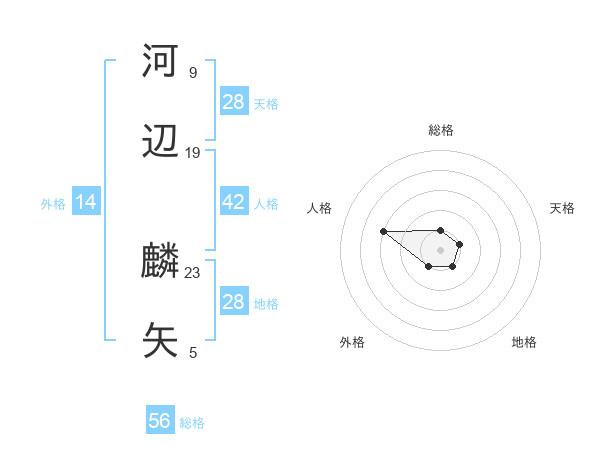 河辺 麟矢さんを姓名の画数から五運を鑑定