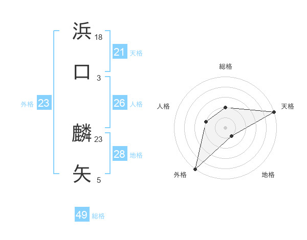 浜口 麟矢さんの外格は23画の5点!