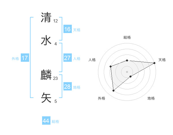 清水 麟矢さんの天格は16画の5点!