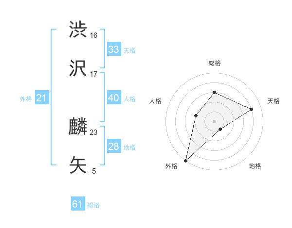 渋沢 麟矢さんの総格は61画の3点!