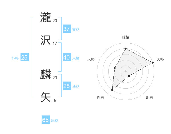 瀧沢 麟矢さんの総格は65画の4点!