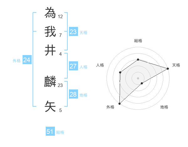 為我井 麟矢さんを姓名の画数から五運を鑑定