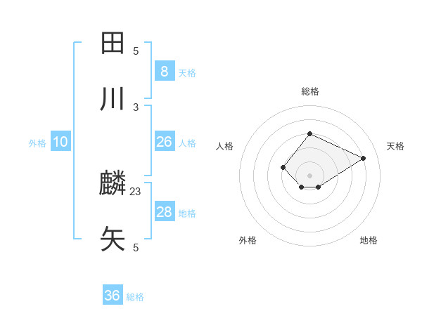 田川 麟矢さんの天格は8画の4点!