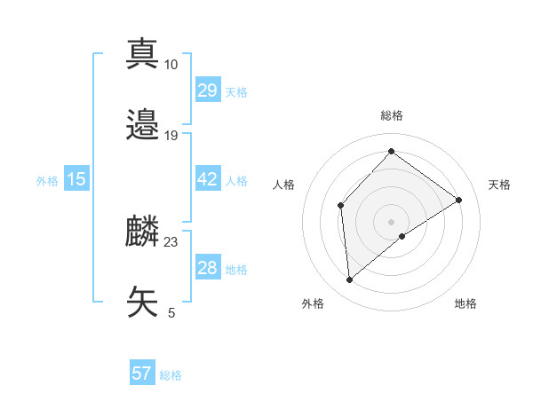 真邉 麟矢さんの総格は57画の4点!