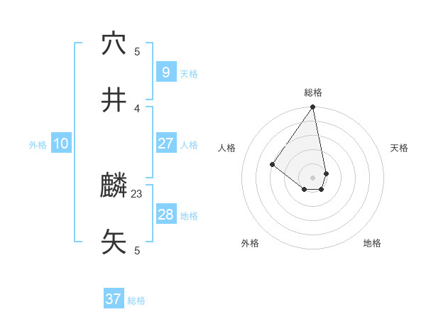 穴井 麟矢さんを姓名の画数から五運を鑑定