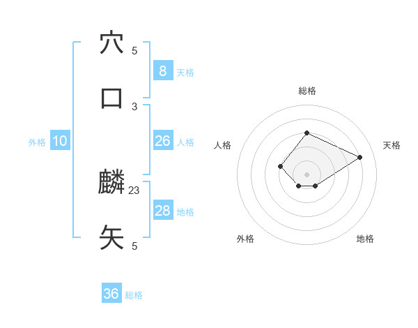 穴口 麟矢さんの天格は8画の4点!