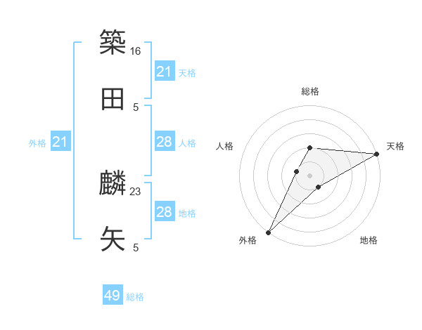 築田 麟矢さんの外格は21画の5点!
