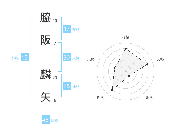 脇阪 麟矢さんを姓名の画数から五運を鑑定