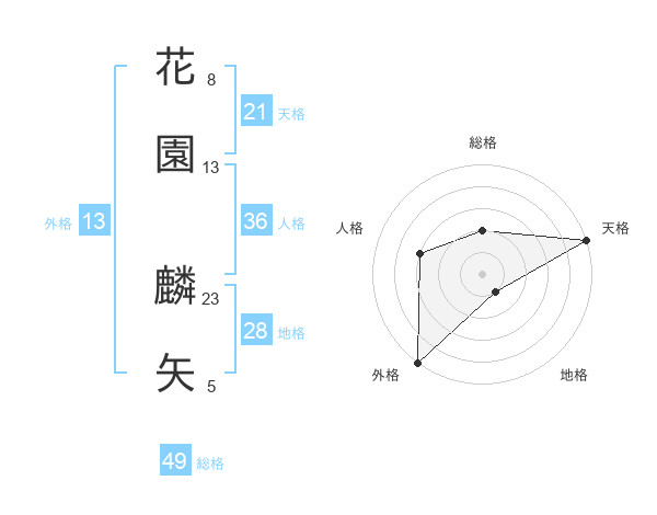 花園 麟矢さんの総格は49画の2点!