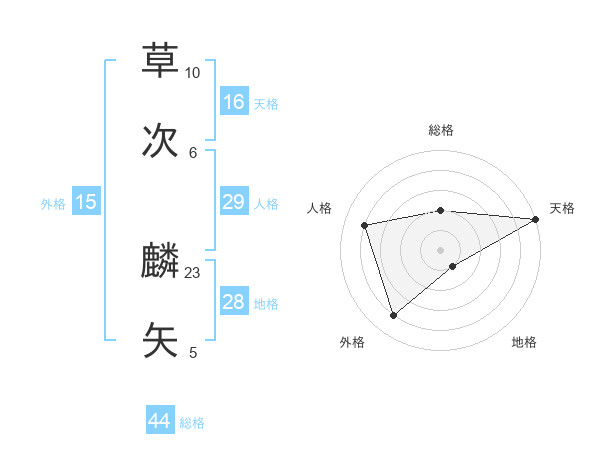 草次 麟矢さんの総格は44画の2点!