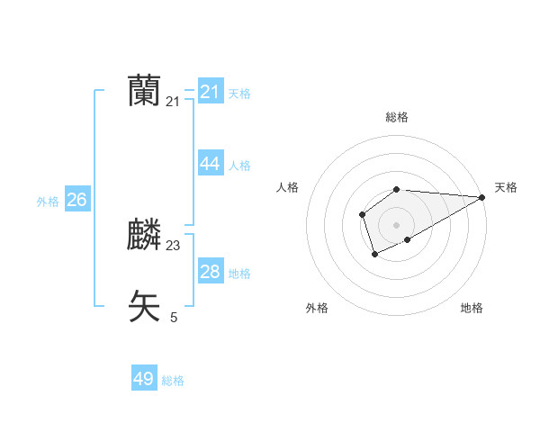 蘭 麟矢さんを姓名の画数から五運を鑑定