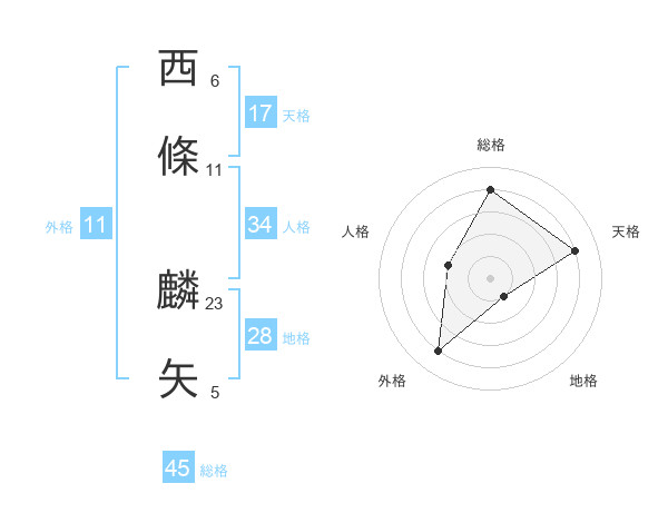 西條 麟矢さんの総格は45画の4点!