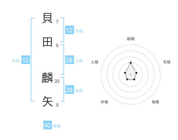 貝田 麟矢さんを姓名の画数から五運を鑑定