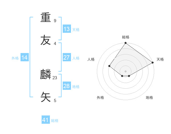 重友 麟矢さんの天格は13画の5点!